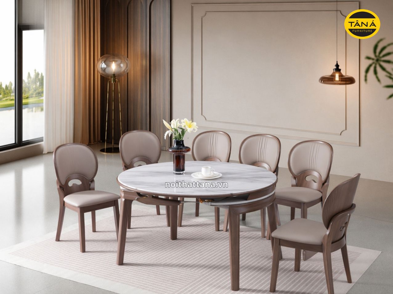 Bàn tròn luôn là lựa chọn lý tưởng cho những không gian cần sự ấm cúng và cân đối. Không có góc chết, mọi vị trí ngồi đều thoải mái và thuận tiện.