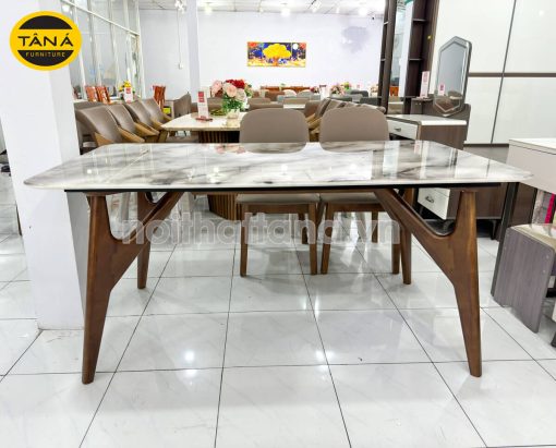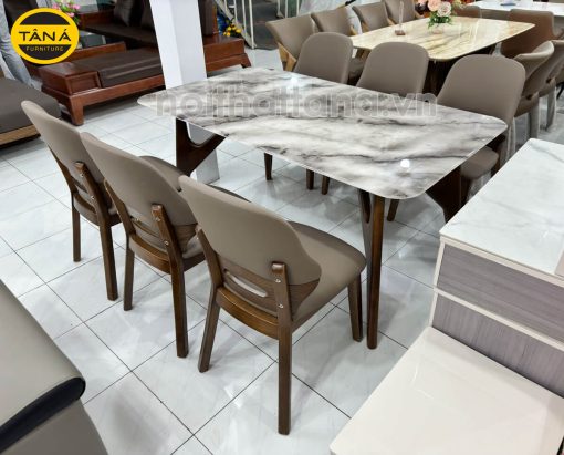 Bộ Bàn Ăn 1,6m BA-T-075 Mặt Đá Tự Nhiên Gỗ Hương Thái + 6 Ghế Nhập Khẩu