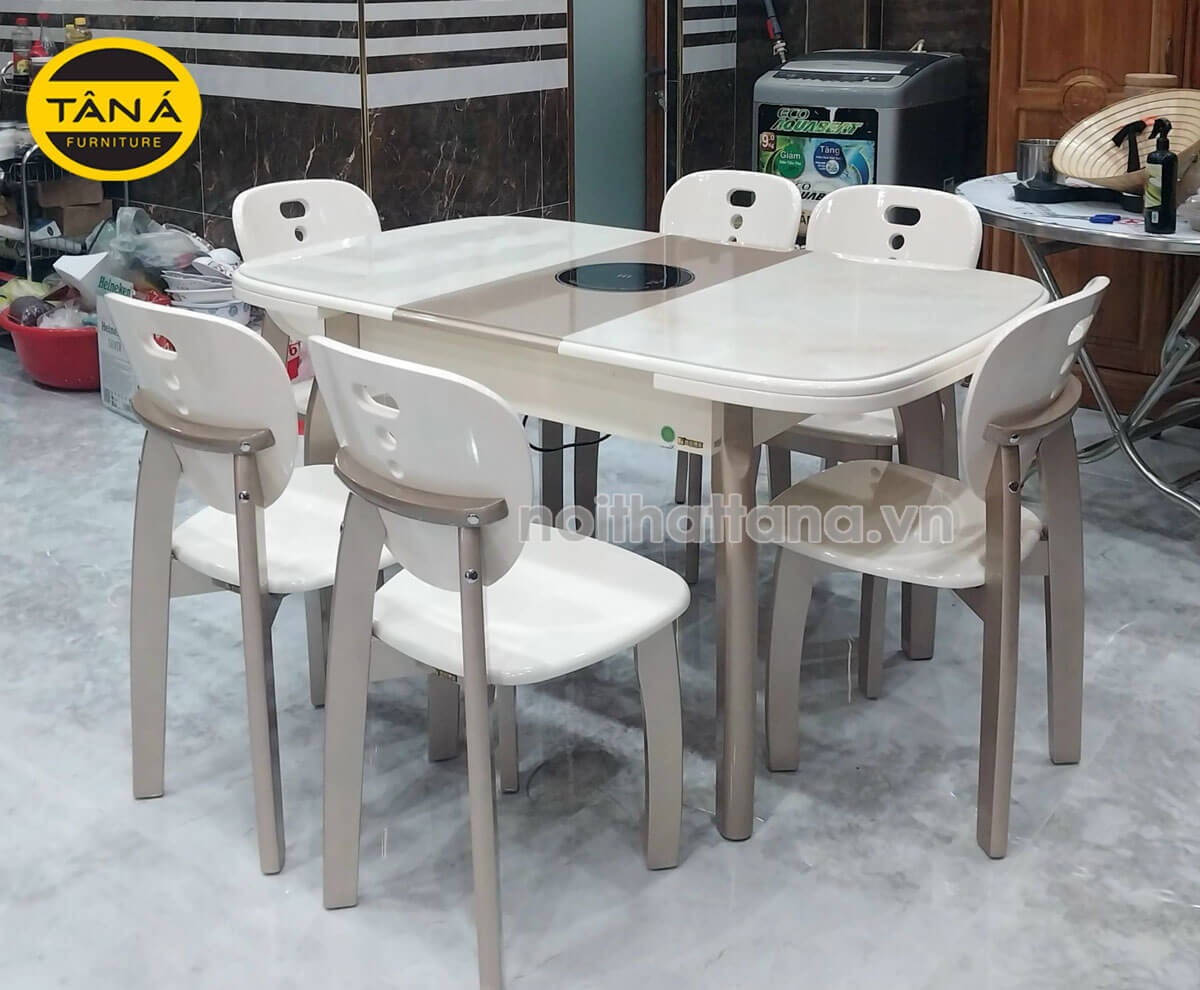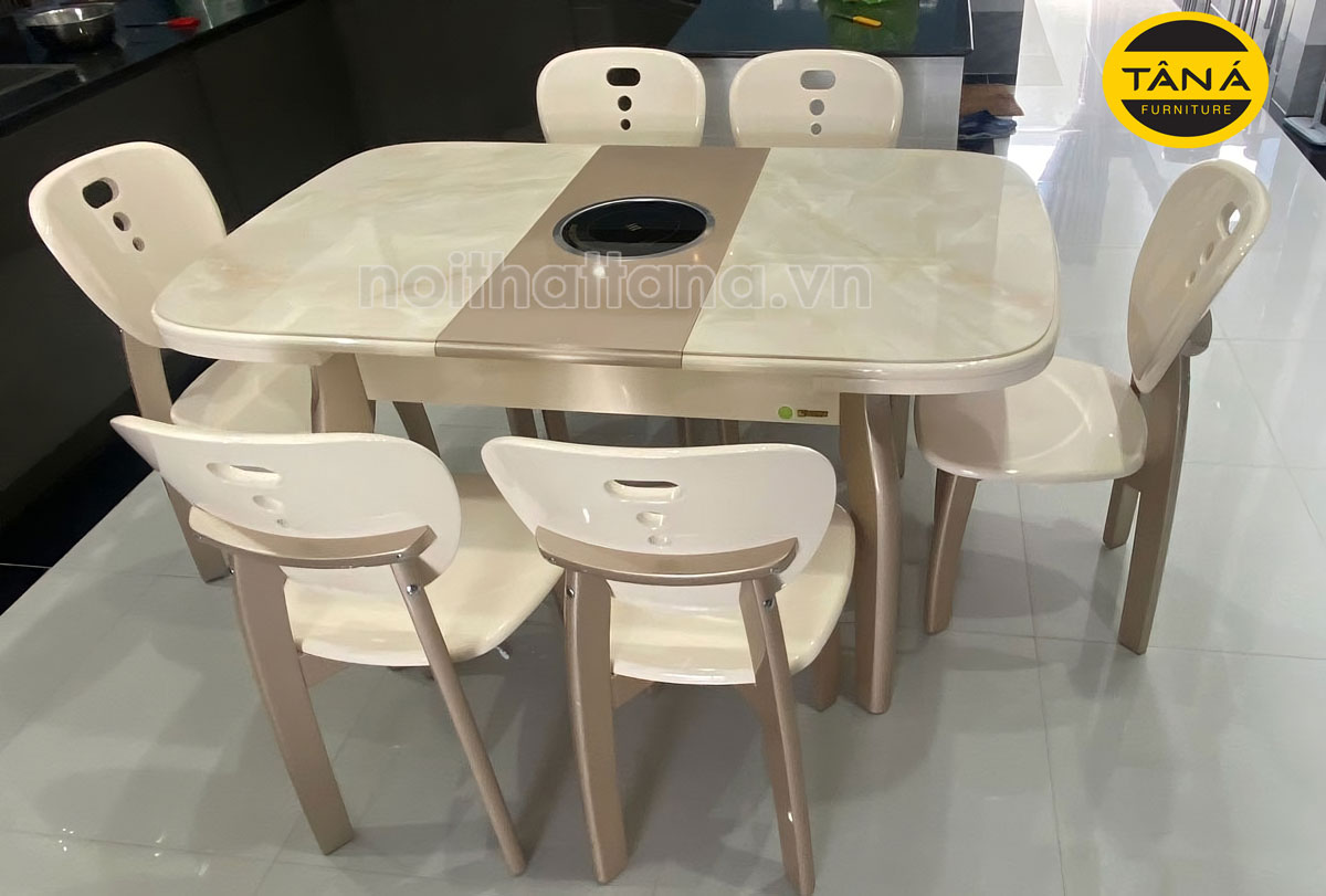 Bộ Bàn Ăn Mặt Đá 6 Ghế BA-APH7027 Gấp Gọn Có Bếp Từ