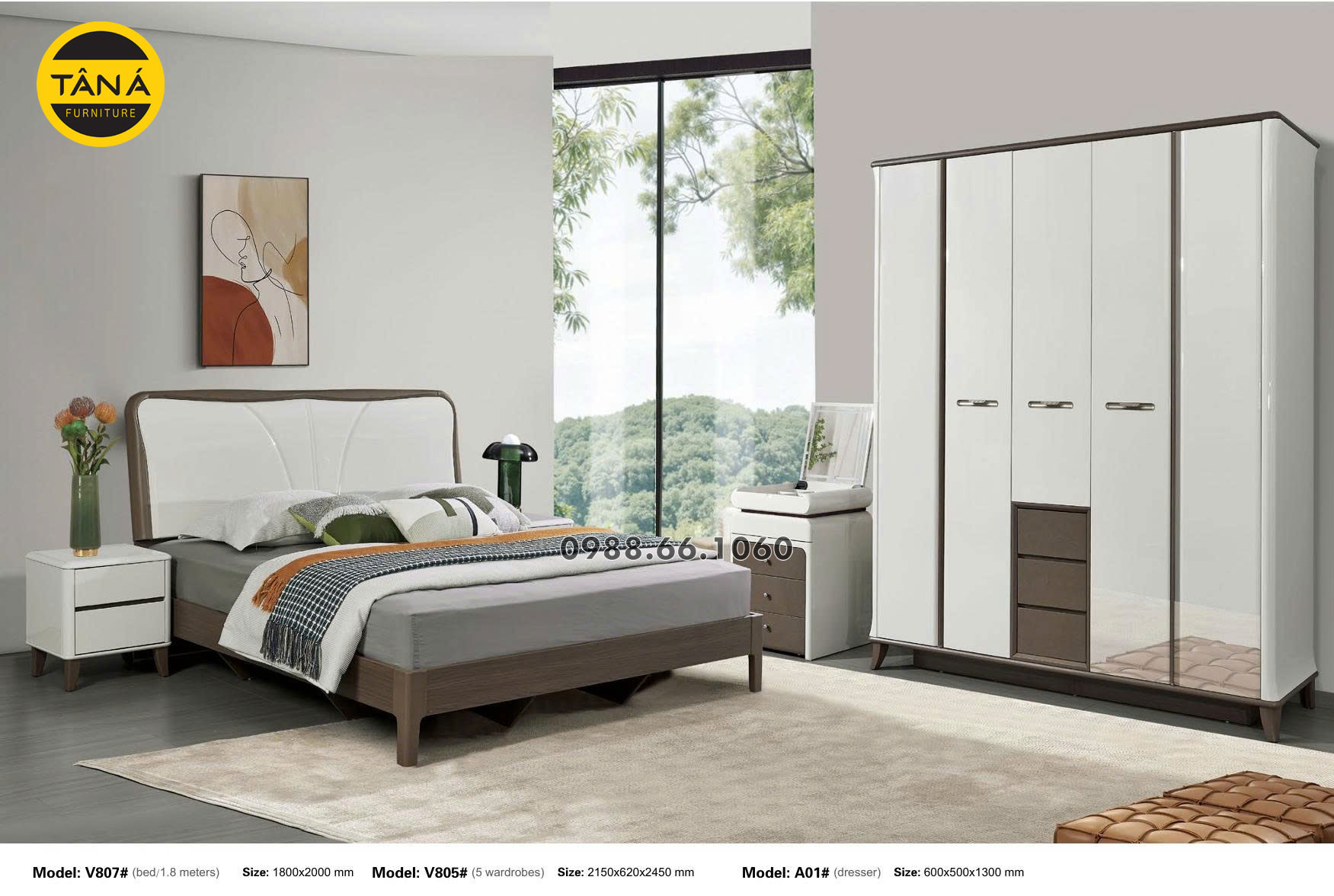 - Kích thước: Giường 1,8m X 2m, Tủ 2,15m x 2,45m