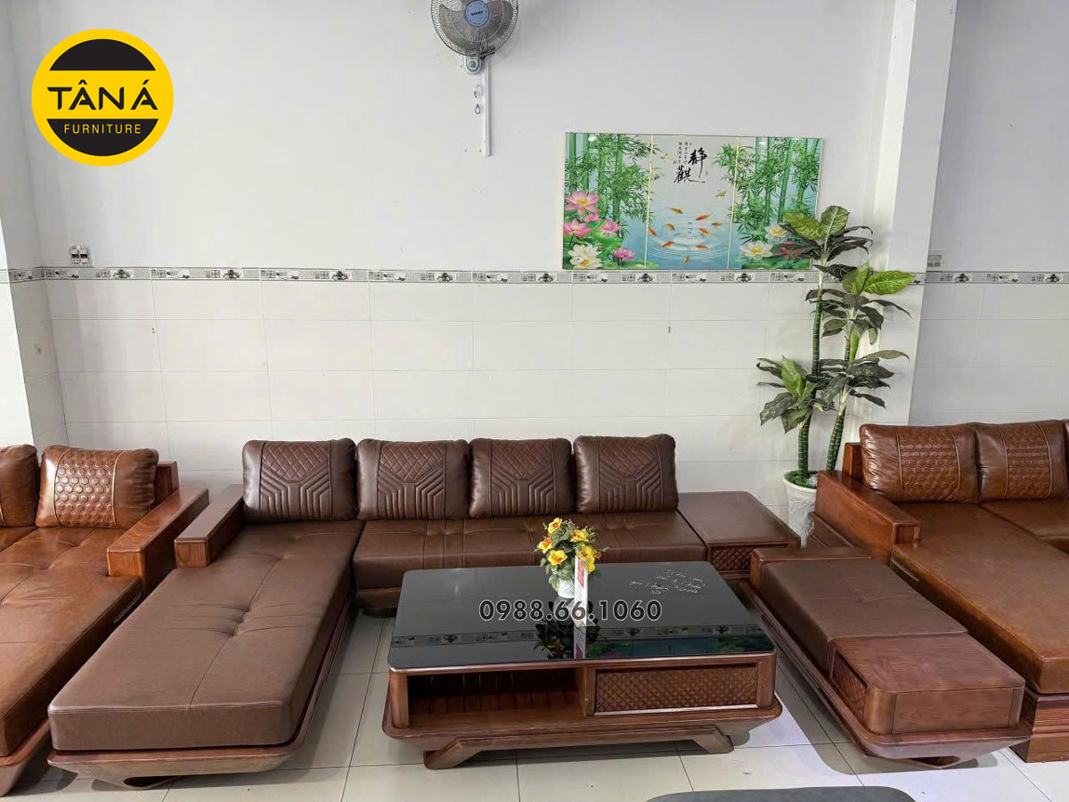 Sofa Gỗ Sồi Góc L Bọc Da Hàn Quốc Cao Cấp TA-GS85