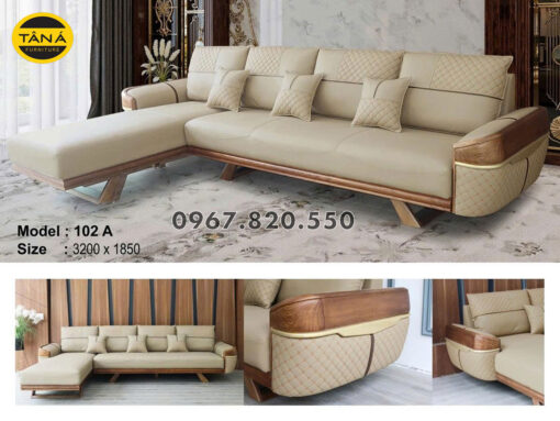 Sofa Góc L Gỗ Sồi Bọc Da Chống Trầy AB-102A là mẫu sofa góc chữ L cao cấp được Nội thất Tân Á tuyển chọn cho phòng khách hiện đại. Thiết kế tinh tế kết hợp khung gỗ sồi nhập khẩu Nga, da chống trầy cao cấp và nệm mút D40 mang đến sự bền bỉ, êm ái và giá trị thẩm mỹ lâu dài.